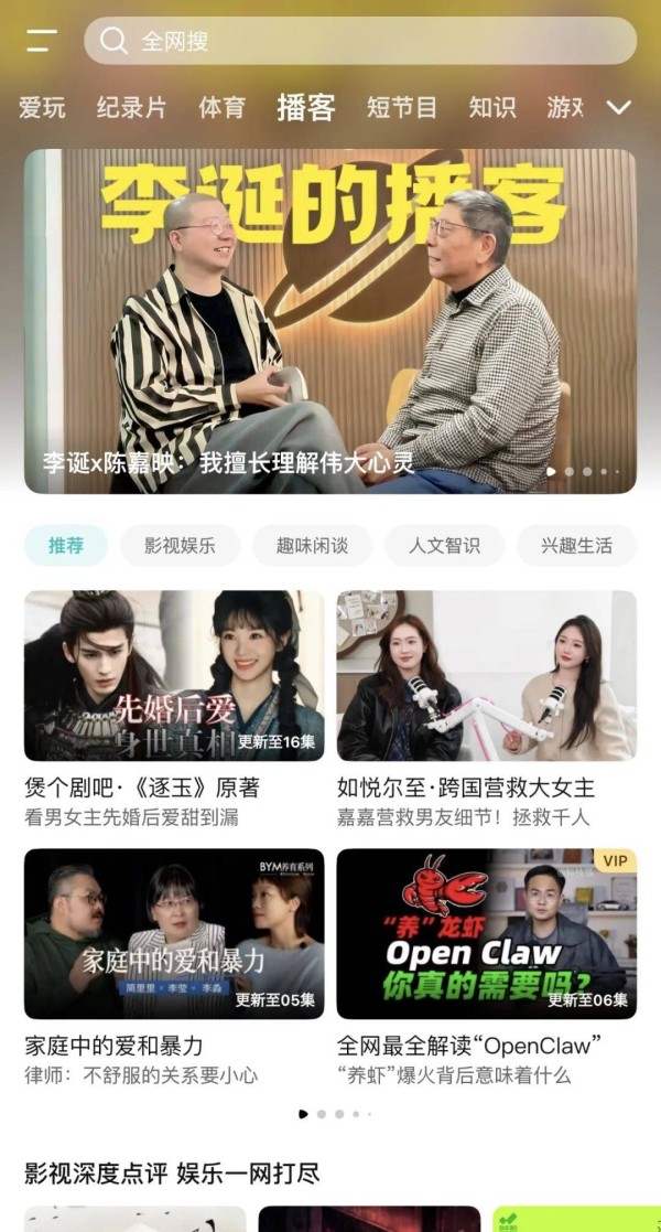 从行业整体趋势来看,视频播客或许不会像短视频或短剧那样形成爆发式增长,但它正在逐渐成为平台内容结构中的重要拼图。