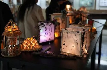 活动现场,同学们充分发挥专业所长,将平面设计、立体构成、传统工艺等专业知识融入创作之中。大家以彩纸、竹篾、布料、环保材料等为载体,巧思构想、精工细作,剪刻纹样、搭建骨架、装饰点缀有条不紊。传统宫灯的雅致、现代几何灯的简约、创意卡通灯的灵动、环保材料灯的新颖,各类作品兼具艺术性与观赏性。创作过程中,同学们相互切磋技法、交流设计思路,分享中秋民俗故事,现场洋溢着温馨和谐的节日氛围。