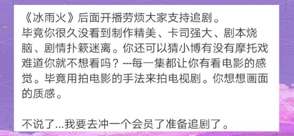如今,随着作品杀青,观众们更是翘首以盼其播出。关于该剧的剧情走向,已有一些线索透露。在推荐《冰雨火》时,粉丝们纷纷用“大片拍摄手法”来形容,强调该剧在拍摄过程中对细节的极致追求,仿佛每一幕都如同电影般精彩。