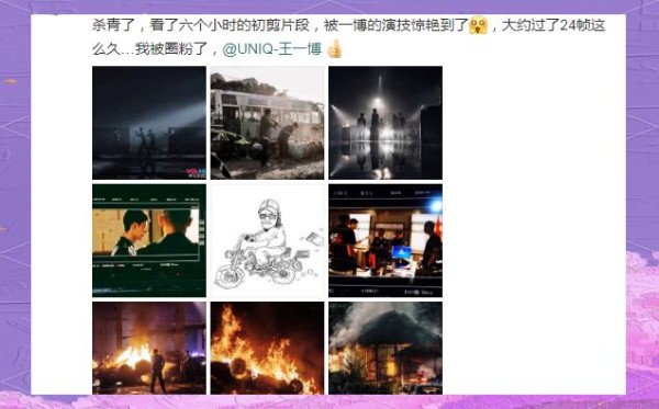 在观看了长达六小时的《冰雨火》初剪后,该剧编剧对王一博的演技印象深刻至极,他直言自己被深深惊艳。更令人感动的是,他坦言在“大约过了24帧”之后,便被王一博的魅力所吸引,瞬间成为他的忠实粉丝。可以说,王一博的演技和魅力,在短短一秒钟内就让他彻底沦陷。