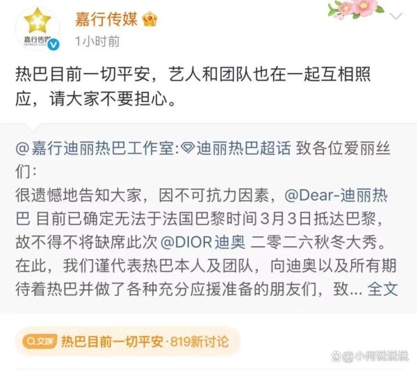 突发!迪丽热巴滞留迪拜缺席迪奥大秀,工作室紧急报平安,全网刷屏:人没事就好
