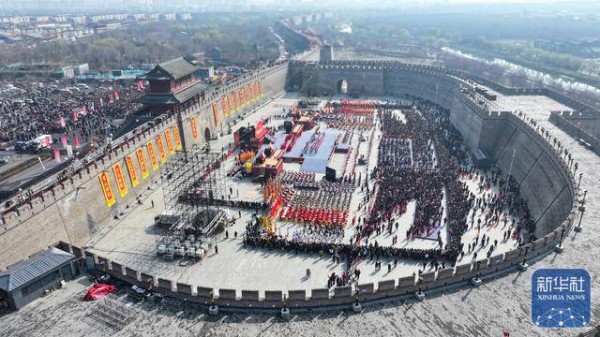 ↑ 这是3月15日在河北省石家庄市正定古城拍摄的2026全国鼓王大会现场(无人机照片)。新华社发(梁子栋 摄)