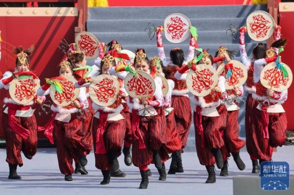 ↑ 3月15日,演员在河北省石家庄市正定古城进行“安塞腰鼓”表演。新华社发(张晓峰 摄)