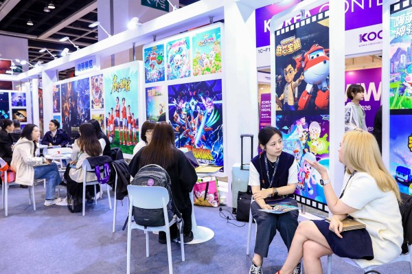 走进广东馆,开阔规整的多品类展区和鲜明的岭南元素占据视觉中心,“虹猫蓝兔”“猪猪侠”等粤产经典IP成为全场人气焦点,来拍照打卡的人特别多。馆内会客区,各家参展主创忙着接待海内外客商,手里接过的名片既有内地影视公司的标识,也有海外发行商的联系方式。