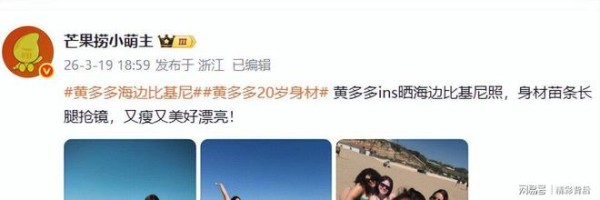 2026 年 3 月 20 日上午,微博热搜榜直接被两个词条霸屏,《黄多多海边比基尼》《黄多多 20 岁身材》双双冲进前十,话题阅读量半天内突破 3700 万次。