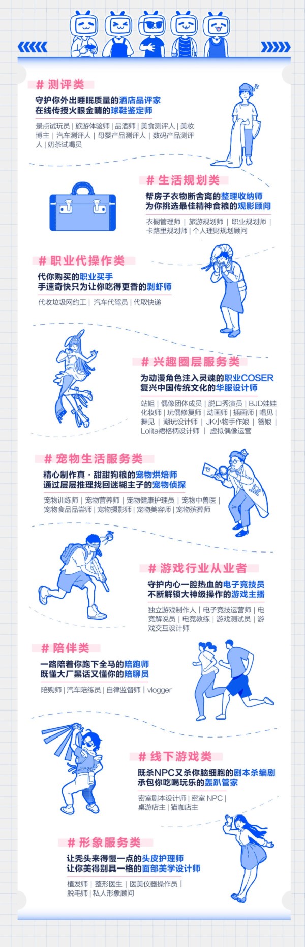 摘要:年轻一代越来越看重生活的品质感,大家善于取悦自己,喜欢为热爱干杯,渴望更高品质的人生体验,而旺盛的新需求恰恰催生出新的市场。在这个全新的市场里,兴趣爱好、生活技能、专业知识都可以被发展为职业。曾经的“不务正业”陆续“转正”。今天互联网更加广泛和深入地改造我们的生活,技术和数据让更多人已有行业变得更酷,年轻人早已在现实中造梦未来,新科技浪潮为年轻人创造了全新的职业空间。新科技为大众带来更为便利的生活,一些熟悉的行业正在被新科技重新武装。在科技突破的时代里,科幻片里的职业也逐步成为现实。