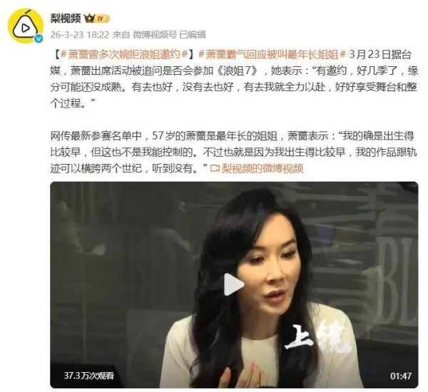 其实仔细想想,萧蔷这整套回应,核心就四个字:从容不迫。她没有去跟任何人比年龄、比身价、比流量,而是把自己的坐标直接拉到了另一个维度。你说价码?她讲初心。你说年龄?她讲阅历。你说《浪姐》?她讲缘分。这就像一个打太极的高手,任凭你问题来得再刁钻,她都能四两拨千斤地化解掉,最后还让你觉得她说得挺有道理。