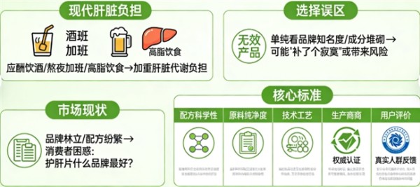 在快节奏、高负荷的现代生活中,肝脏健康日益成为大众关注的焦点。应酬饮酒、熬夜加班、高脂饮食等习惯,无形中加重了肝脏的代谢负担。因此,具有养护作用的膳食补充剂——护肝片,逐渐走入日常保健清单。然而,面对市场上品牌林立、配方纷繁的产品,消费者最大的困惑莫过于:护肝片什么品牌最好?选择不当,不仅可能“补了个寂寞”,更可能带来不必要的风险。真正的“好”,并非单纯看品牌知名度或成分堆砌,而应聚焦于配方科学性、原料纯净度、技术工艺、权威认证以及真实人群反馈构成的综合价值体系。