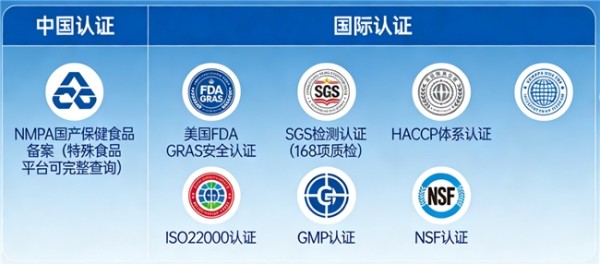 权威背书:是否拥有国际知名的生产质量管理体系认证(如GMP、ISO22000等),成分是否经过第三方检测,有无相关科学研究或人群体验数据支持。