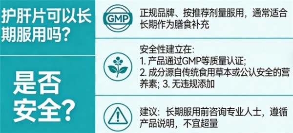 A:对于成分明确、质量可靠的护肝片,在推荐剂量下长期服用通常是安全的。但任何补充剂都建议采用“服用周期”法,例如连续服用2-3个月后,暂停1-2个月,让身体自我调节。孕妇、哺乳期妇女、有严重肝脏疾病或正在服药的人群,使用前务必咨询医生。