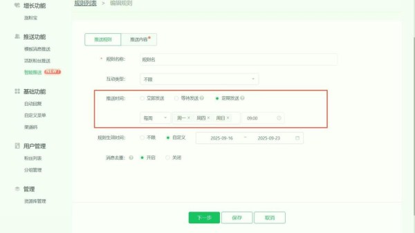 Step4:筛选推送对象 —— 在【推送设置】里,勾选 “关注渠道不限”“组别不限”,发送时间设为 “现在”,这样能触达 48 小时内活跃的粉丝,不打扰沉默用户。