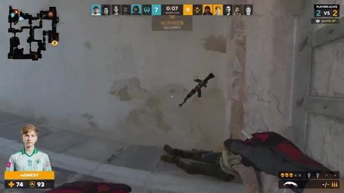哎我孩神怎么这么坏啊!m0NESY怂恿残血队友在炸弹爆炸时战神起跳,没想到炸弹的威力这么大,队友直接停止了呼吸,并失去了他的卡拉什尼科夫。