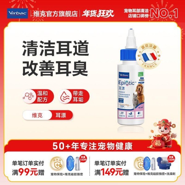 ✅ 正确做法:选择专业洗耳液搭配软管设计,能直达耳道弯折处。比如这款滴耳液采用温和植物配方,银离子抑菌技术可在清洁同时形成保护膜。使用时只需轻轻挤压瓶身,液体便会自动包裹耳垢并软化脱落,宠物甩头时污物自然排出,全程无需棉签深入。