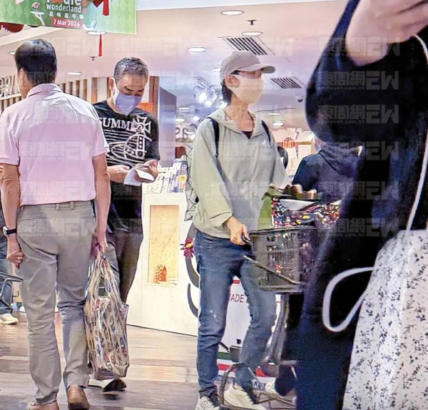 58岁的郭蔼明现身超市购物,她穿了一件浅灰色薄外套、搭配了浅蓝色牛仔裤。戴着口罩帽子,像是怕被认出来。