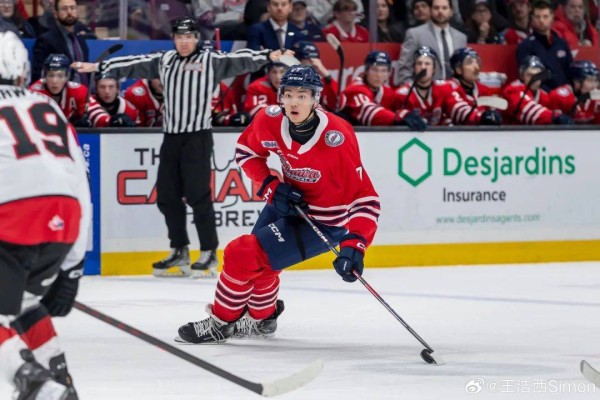 18岁王浩西第33顺位入选北美NHL冰球联赛,创中国选手选秀非常好成绩