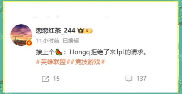 在世界赛中表现出色的HongQ也成为了LPL赛区的邀请目标。然而,他并未接受LPL的邀请,选择留在LCP赛区,以继续巩固他的发展与荣誉。HongQ在直播中曾表达对LPL教练选择弱势英雄的不满,这也成为他拒绝重返LPL的原因之一。