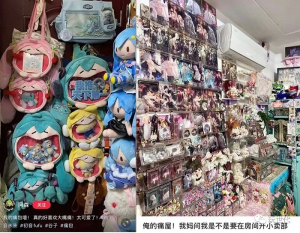 廉价的尼龙包塞满“吧唧”(徽章),就变成了“年轻人第一款轻奢包包”,这样的“痛包”市价轻松上千。更顶奢的是“痛房”,把动漫周边铺满整个房间,每寸面积都散发出直逼六位数的豪门味道。坊间甚至有一种调侃,“金融危机来了都有二次元来扛”。