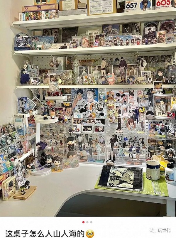 在圈外看来,这些二次元脸就像复制粘贴一样,精密排列,丰富、充实又热闹。而在一个二次元人士眼中,痛桌关乎着一种饱满的极繁美学,谷子越繁多就拥有越真实的陪伴感。
