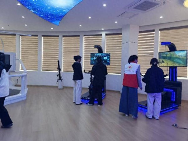 在VR心理放松体验区,VR动感单车、沉浸式体验舱等科技设备成为“减压神器”。参与者佩戴VR设备,在虚拟场景中沉浸式骑行、体验放松训练,在运动与科技的结合中释放压力、舒缓焦虑;动感座椅带来的多感官体验,为群众提供了安全、可重复的情绪宣泄与心理调适渠道,有效缓解日常工作与生活带来的精神压力。会员们全程协助操作设备、维护现场秩序,确保每一位参与者都能安全、顺畅地完成体验,切实感受到心理服务的温暖与专业。