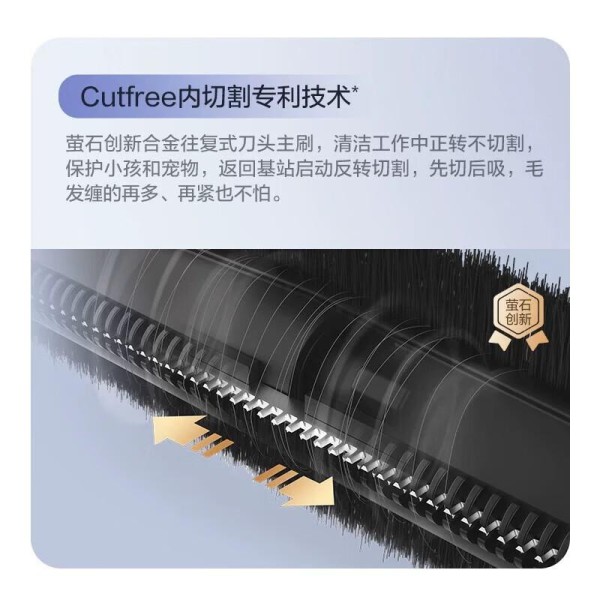 采用创意的0缠绕设计,显著减少了毛发和杂物的缠绕问题。这项设计提升了清扫效率,用户可以更便捷地使用机器人,同时降低了维护成本和时间。