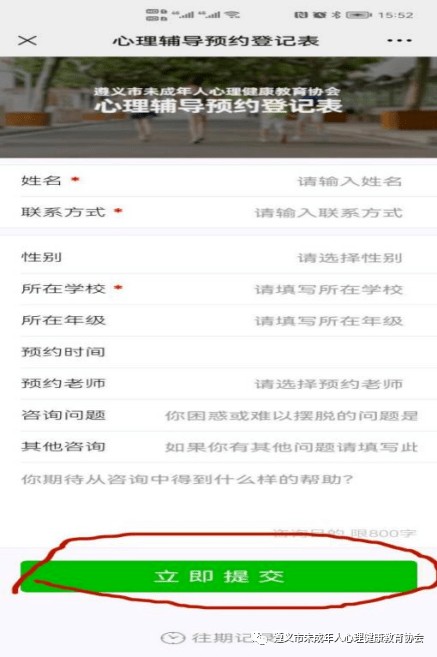 附表1 遵义市未成年人心理健康教育协会一键预约及操作方式