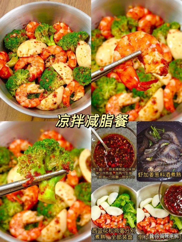 步骤1:准备新鲜的虾,加入姜葱和料酒煮熟后捞出备用。同时,将西蓝花和鸡蛋也分别煮熟。