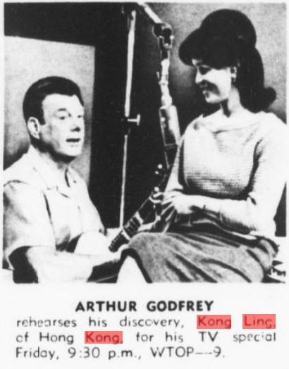 除了华人之外,西方来客对江玲和她的歌曲也颇感兴趣。对西方人来说,江玲将英文歌曲加上一些国语歌词,能够凸显出江玲的东方韵味,这是江玲受到西方听众欢迎的一个重要原因。关于这一点,不得不说的是江玲的另一段故事。1960年,美国电视节目制作人亚瑟·戈弗雷(Arthur Godfrey)在亚洲巡演,并同步录制节目,香港也是他巡演的一站。由于这个契机,江玲得以与亚瑟·戈弗雷结识: