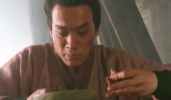 再来看看第十回,《朱贵水亭施号见林冲雪夜上梁山》中的一幕:林冲问酒保:有什么下酒的?酒保答:有生熟牛肉,肥鹅,嫩鸡。林冲笑道:先切二斤熟牛肉来。不一会儿,酒保便将一大盘牛肉端上,佐以数样蔬菜,旁边还有大碗的酒。林冲这才满足地点了点头。