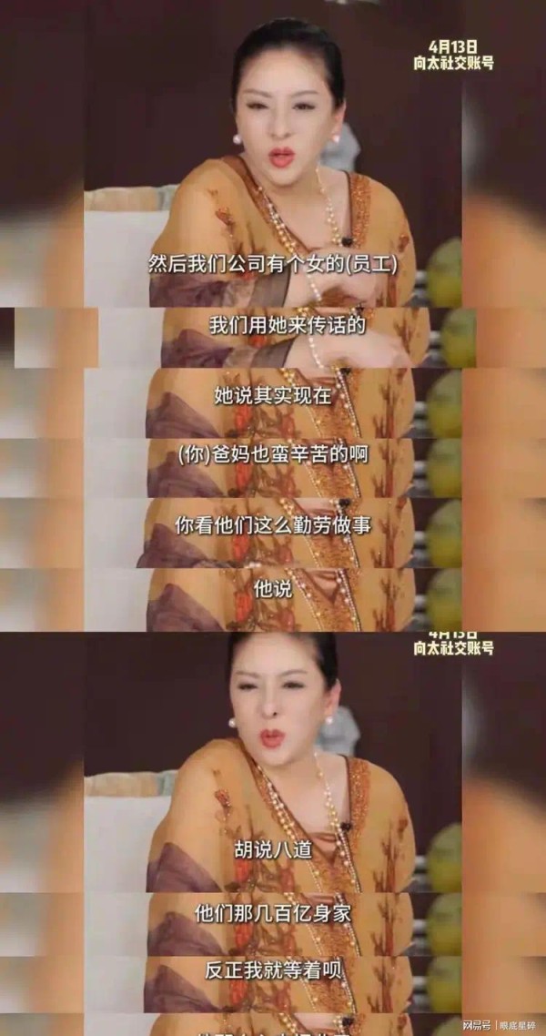 这些年,向太向华强恨不得与这个“败儿”彻底切割,但碍于血脉亲情,也不得不通过助手适当给予贴补,可每每提到他仍是一脸愁容,4月13日,向太再发视频提及向佑,表示自己3个子女,只剩下向佐还在加油赚钱了,其余两个完全躺平。