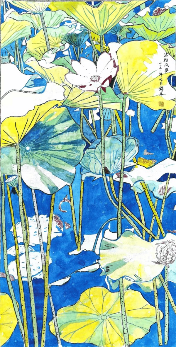 冯锦屏创作的国画作品《洁雅风姿》,被认定为兼具艺术高度、文化厚度与社会价值的杰出作品。以独特的视角与文化表达,展现东方智慧对地球未来的思考与担当,高度契合本次展览的精神内核。在第30届联合国气候变化框架公约缔约方大会,联合国可持续发展目标《地球之美》艺术展中荣获金奖。