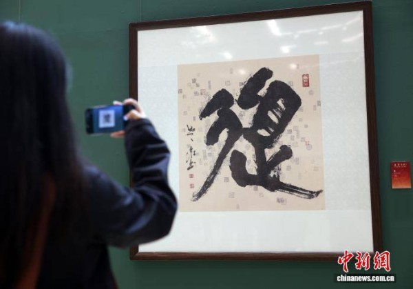 4月25日,李金泰的书法作品“道”字。中新社记者 李国庆 摄