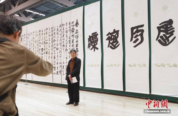 中新网北京4月26日电 (记者 孙晨慧)“惟楚有材——李金泰楚简书法艺术展”4月25日在中国国家画院开幕。年近八旬的楚简书法家李金泰携300余件作品亮相。